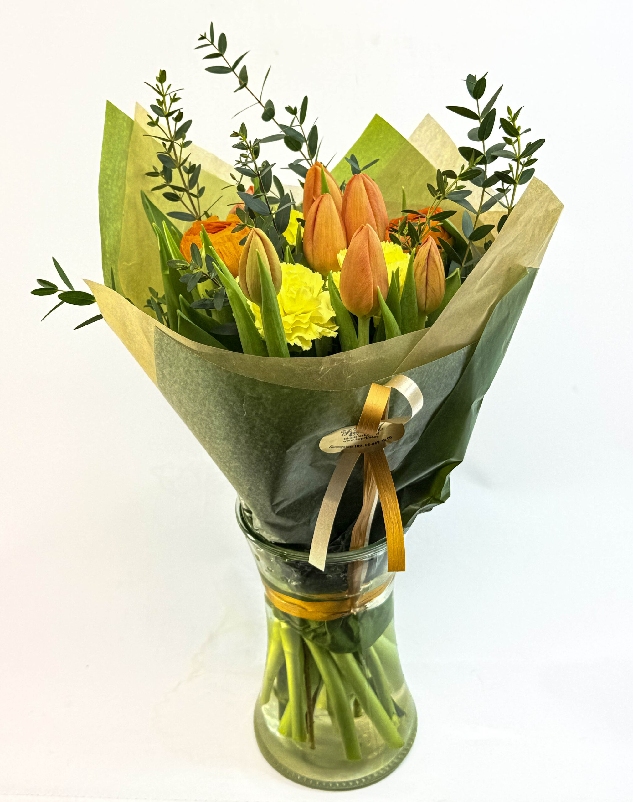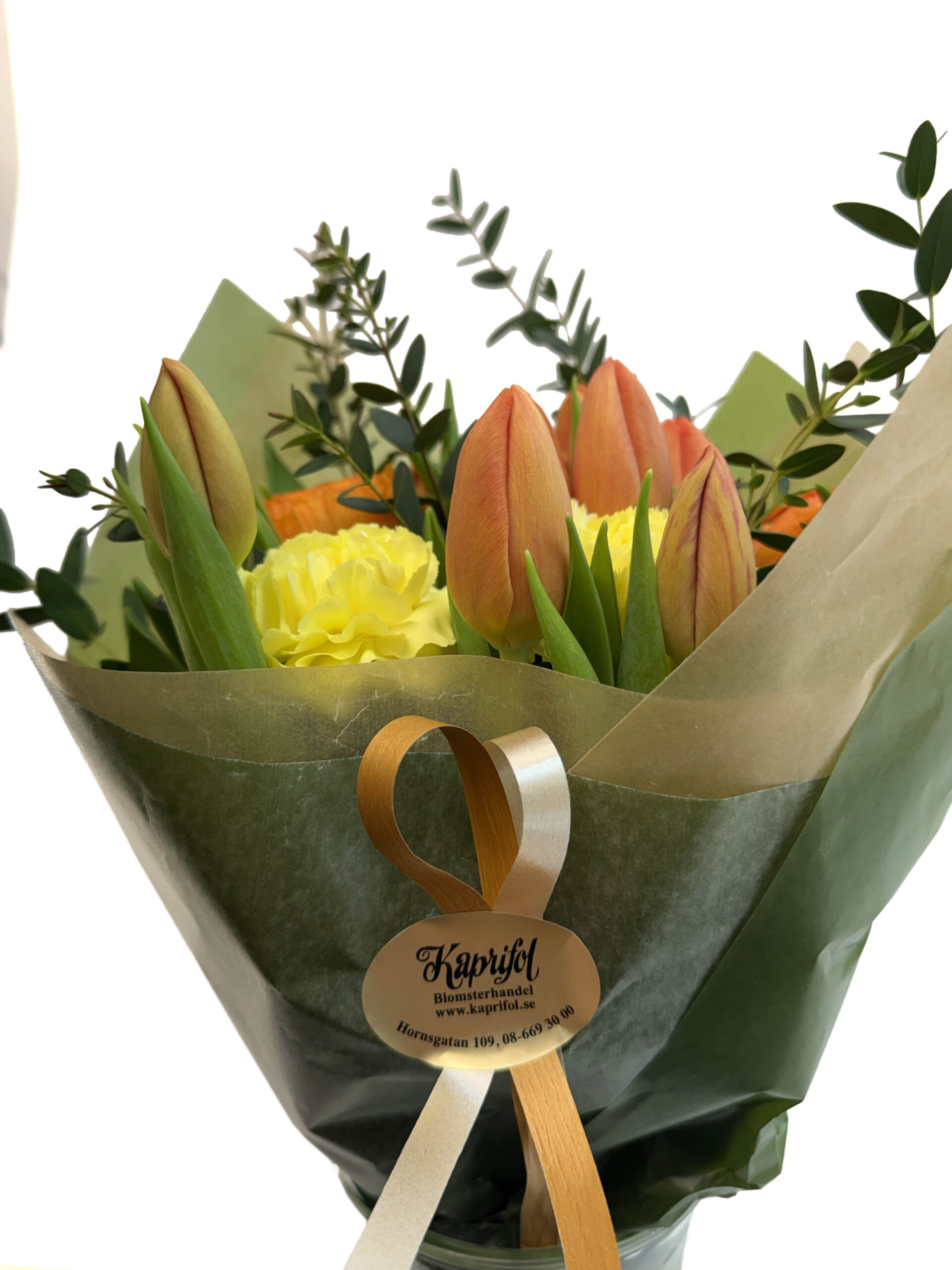 Beställer du innan 10:30 så är blommorna som regel ute samma dag innanför tull i Stockholm. Gäller ej alla hjärtan och begravning och ordrar utanför tull, där behöver vi orden 24 timmar innan, är du sen eller ska skicka till andra platser är det bäst att du ringer oss på 08-6693000 så ser vi om det går att lösa. Vi reserverar oss för prisändring vid utomlands och glesbygds ordrar. Allt gott önskar Kaprifol